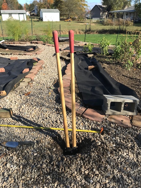 For those who don’t know what this contraption is, it’s a post hole digger. And it doesn’t work. I put it in the ground and waited for it to dig a hole, and the darn thing just sat there. It didn’t dig a lick.